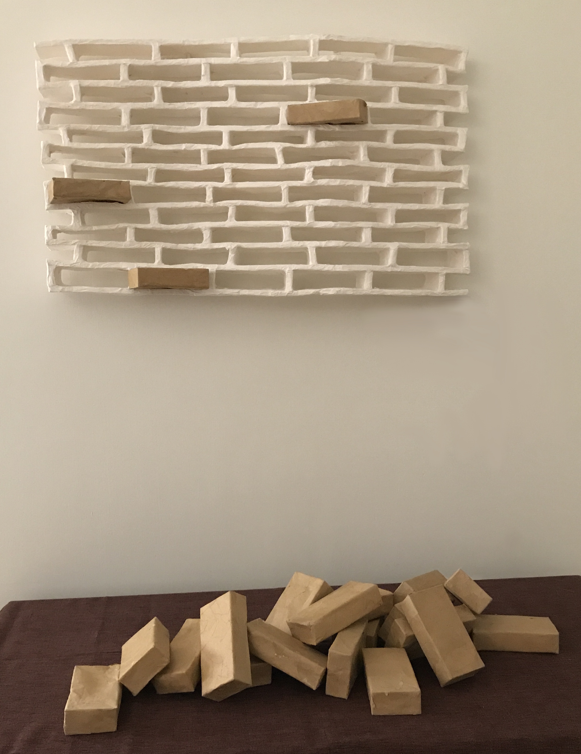 This is particularly the case in I'm Still Standing / בית נאמן, my depiction of the mortar that holds the house together, but is seldom noticed over the bricks. The Hebrew title, literally, house of trust, refers to a line used to wish success to newly married couples, but also plays on the Talmudic term for wife, בית or house.